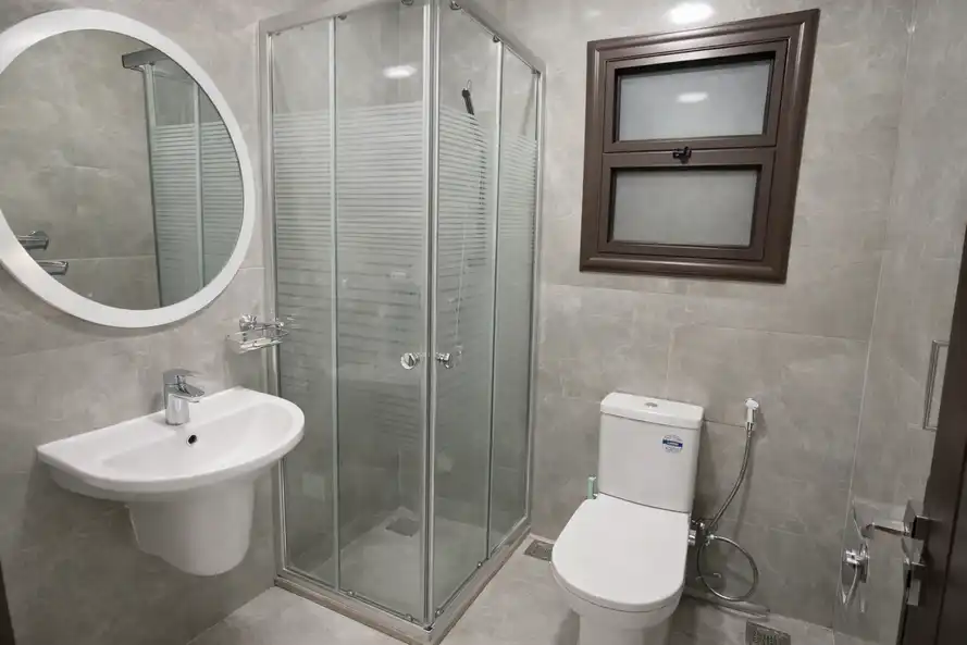 غرفه ماستر بحمام مكيفه و2غرفه دبل بها عدد 2 سرير 120سم مكيفه ومطبخ كامل الاجهزه والحمامات سخن وبارد دور ثانى