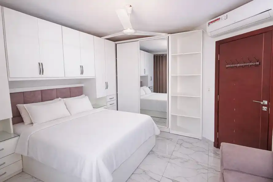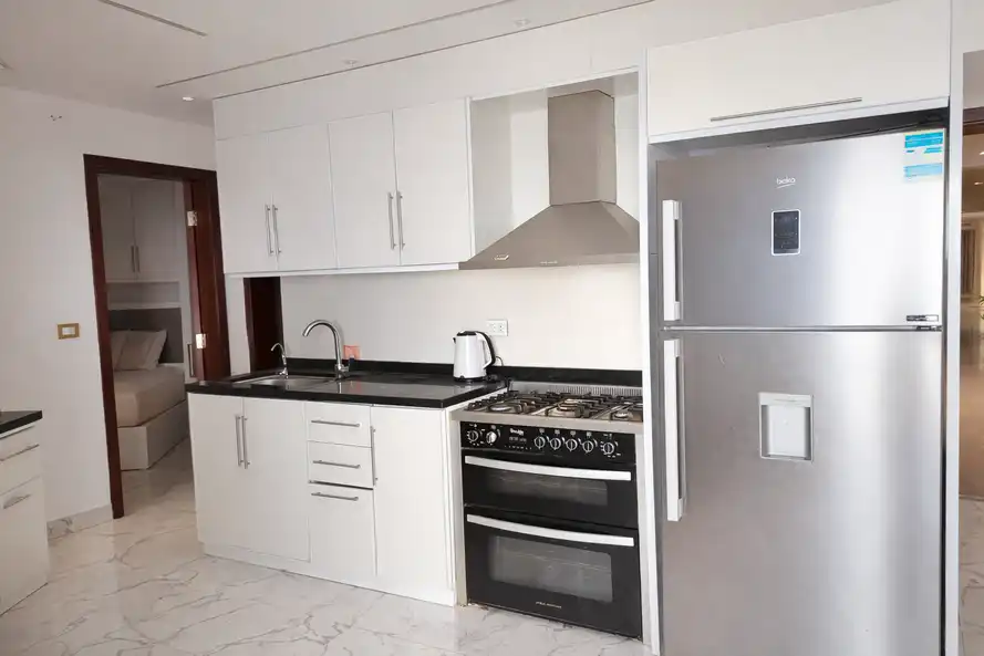 غرفه ماستر بحمام مكيفه و2غرفه دبل بها عدد 2 سرير 120سم مكيفه ومطبخ كامل الاجهزه والحمامات سخن وبارد دور ثانى