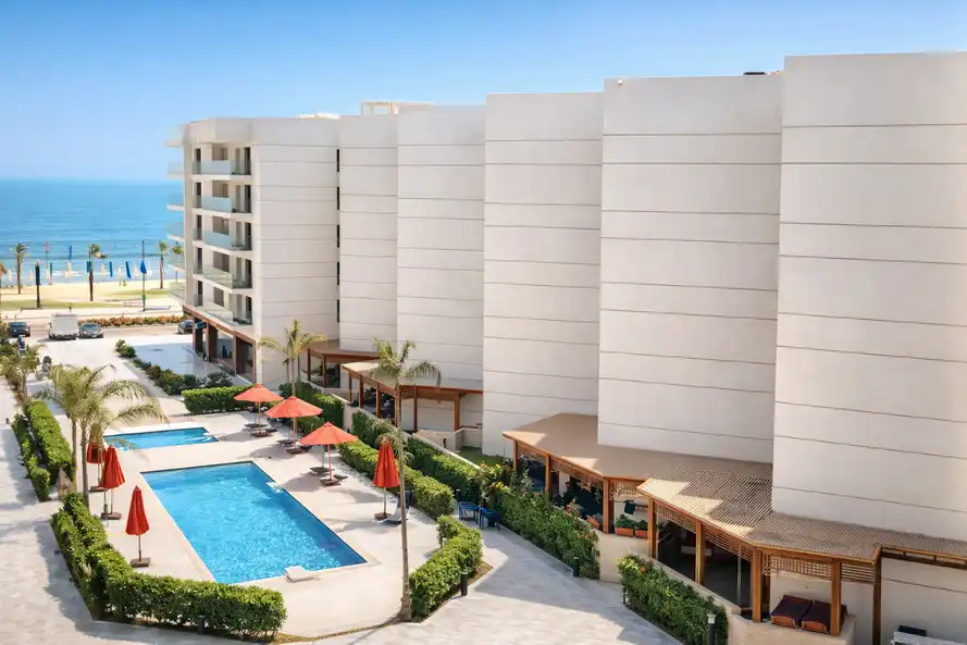 - عرض: اطلاله على البحر وحمامات السباحه والاكواربارك