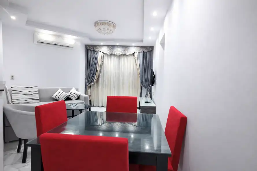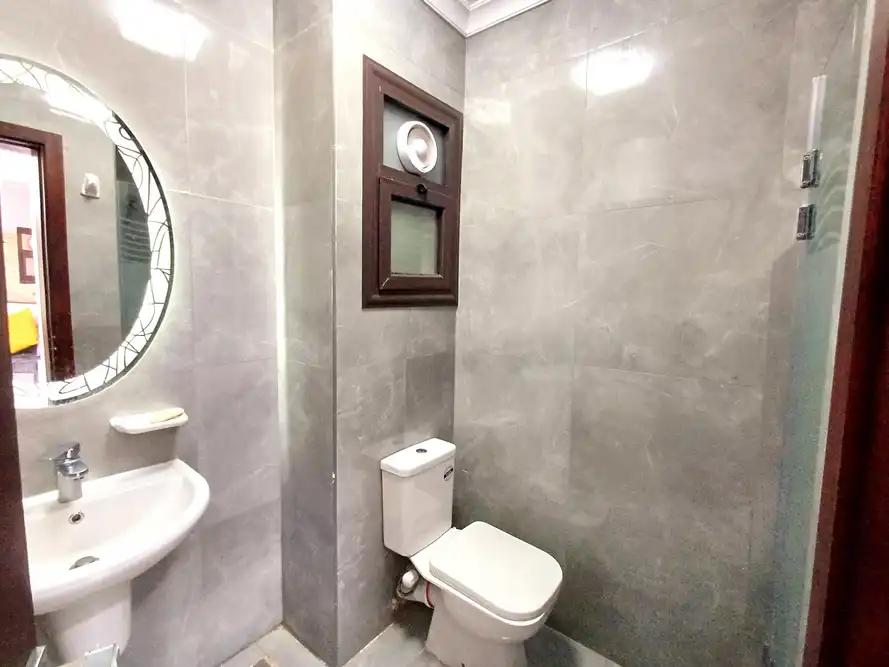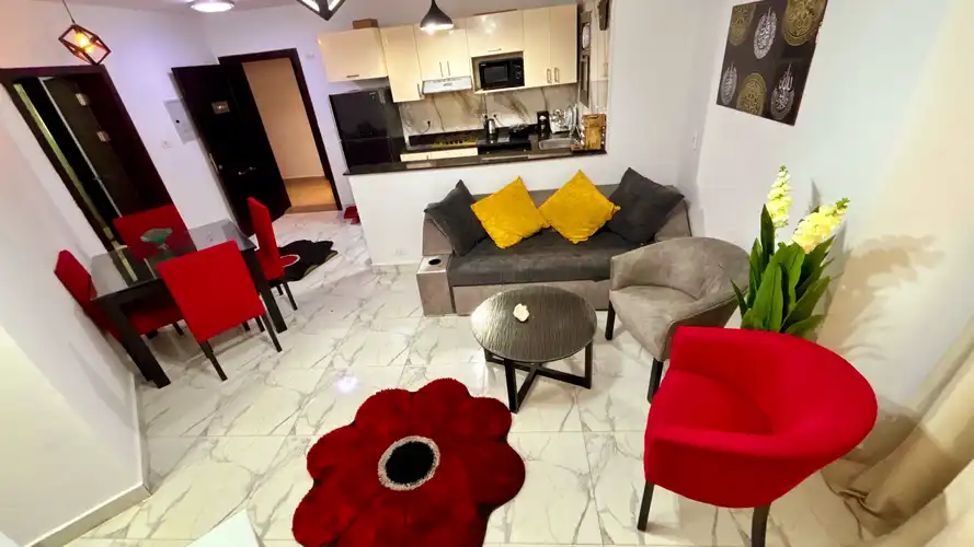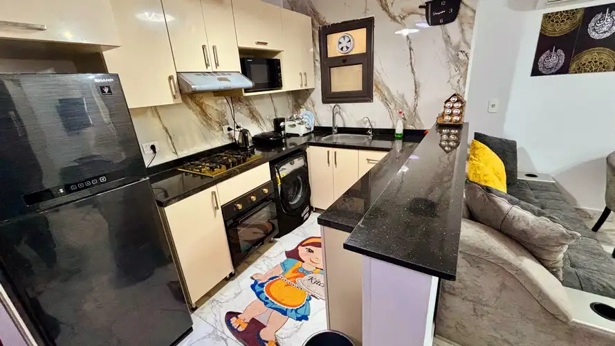 غرفه ماستر بحمام مكيفه و2غرفه دبل بها عدد 2 سرير 120سم مكيفه ومطبخ كامل الاجهزه والحمامات سخن وبارد دور ثانى