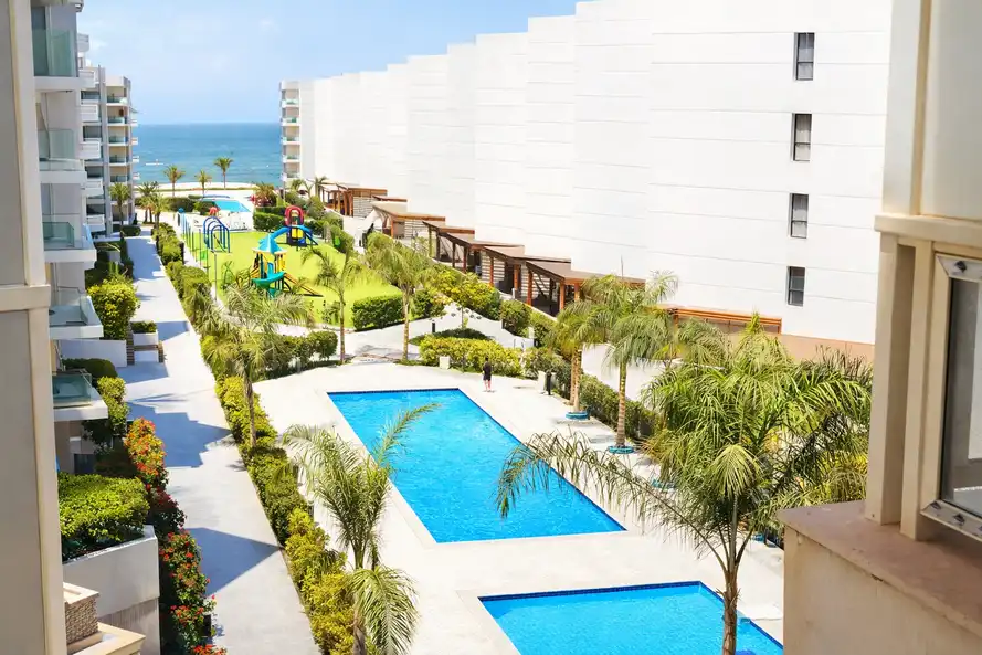 - عرض: اطلاله على البحر وحمامات السباحه والاكواربارك